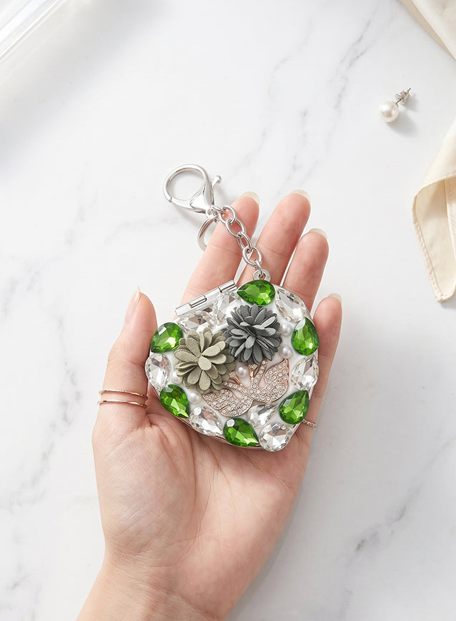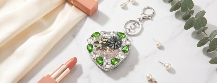A sparkling purse charm that opens into a premium makeup mirror. Your perfect on-the-go accessory.