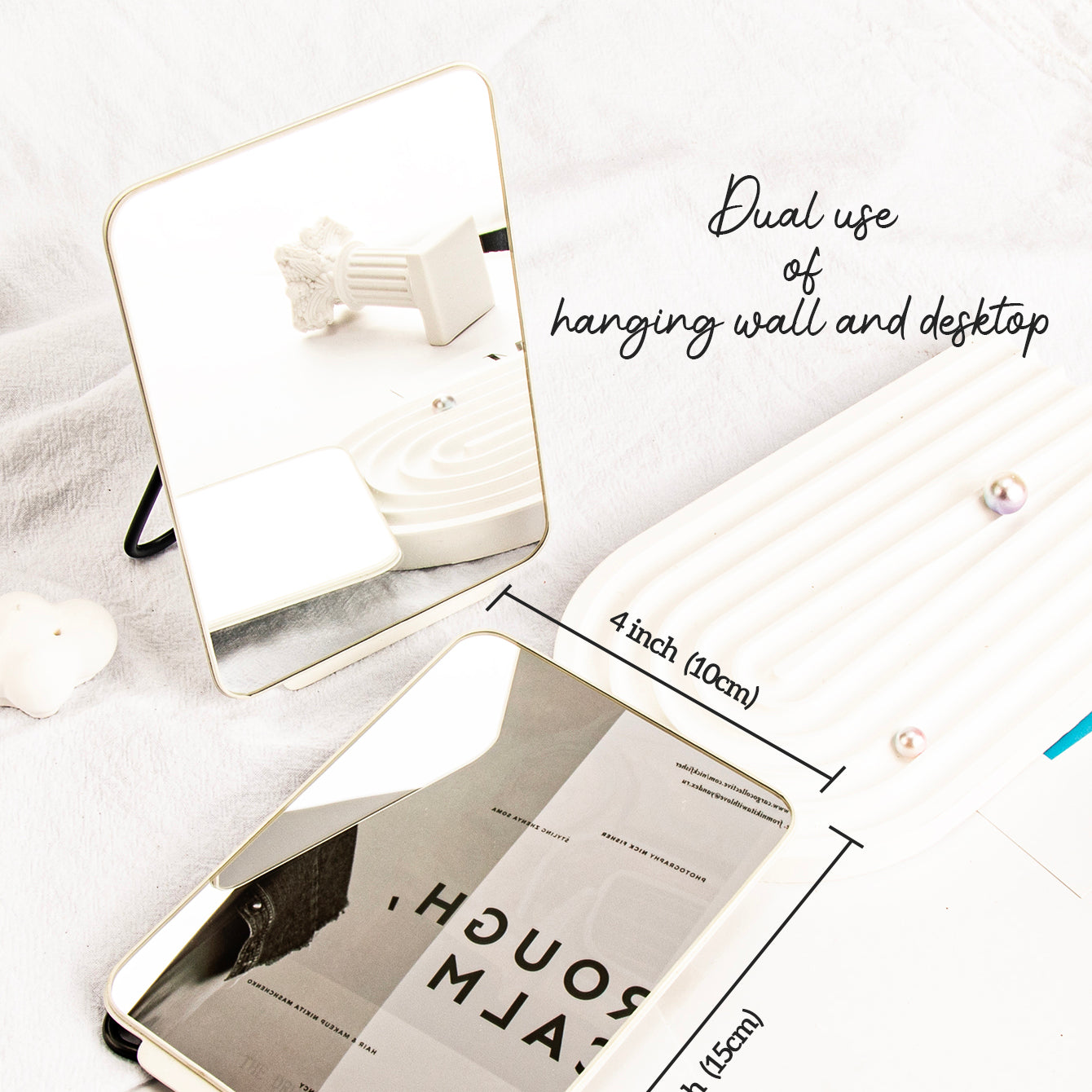 This stainless steel makeup mirror with an iron stand is not only practical and durable but also adds a modern, elegant touch to your living space, making it the perfect companion for your daily beauty and makeup routine.