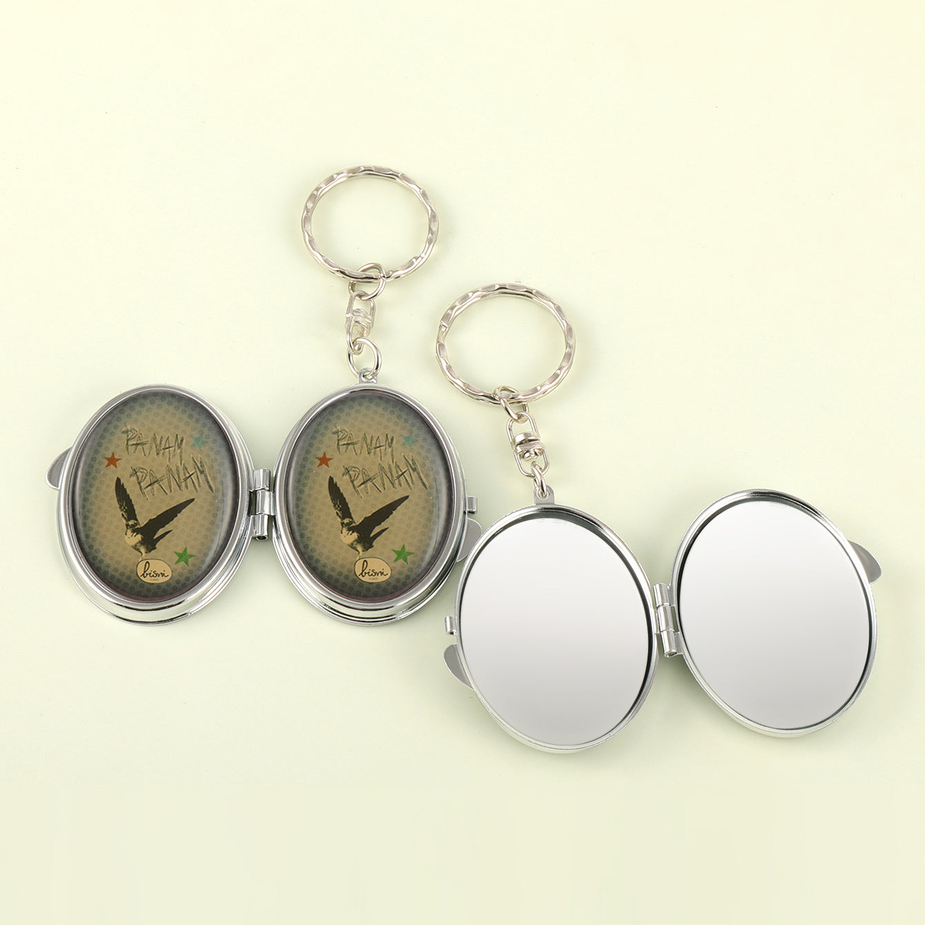 Compact yet sophisticated, our oval epoxy style vanity mirror comes in just the right size: 40*50*8 mm. Not only is it a practical keychain, it is also a must-have HD glass mirror before applying makeup to help you achieve a flawless makeup look!