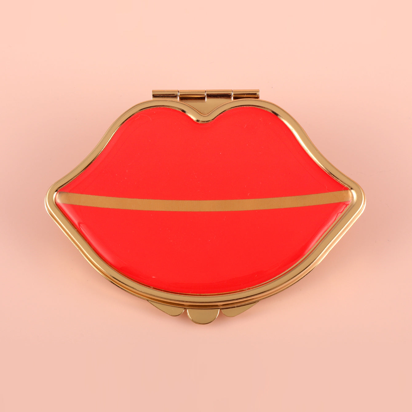 Lip Design, Plating Gold Metal Frame, HD Environmental Protection Glass Lens, 92x70mm Ultra-Mini Cosmetic Mirror, Take Beauty with You