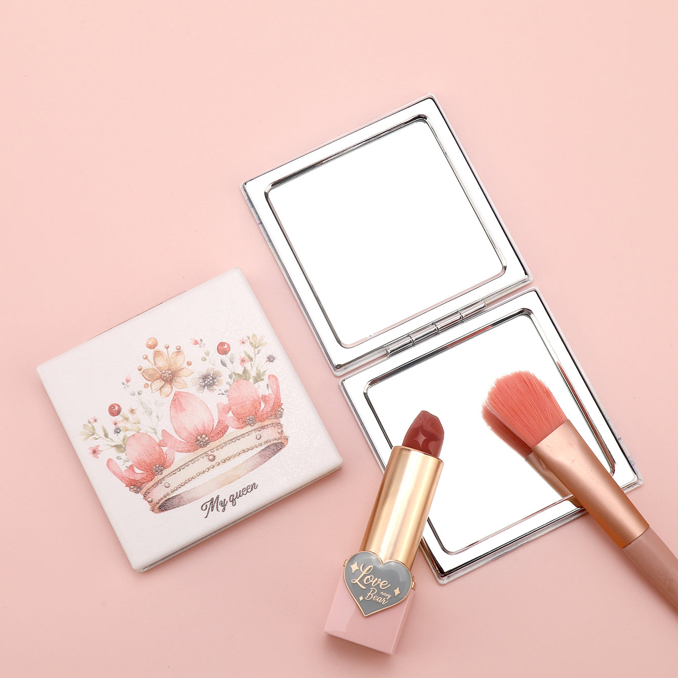 PU Eco-Friendly Leather Cosmetic Mirror, Printed With Various Patterns, Plating Silver Metal Frame, HD Glass, 70*70mm Square Design, Multiple Styles To Choose From, The First Choice For Gift Giving.
