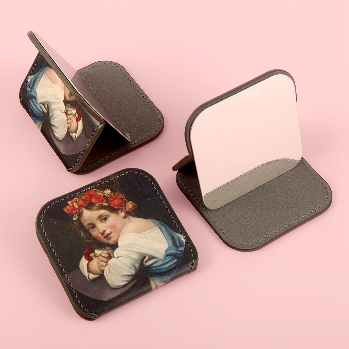 PU Eco-Friendly Leather, Customized Exclusive Pattern, Single-Sided HD Stainless Steel, 80*76*8mm Square Cosmetic Mirror, Various Styles, Suitable for Both Gifts and Personal Use