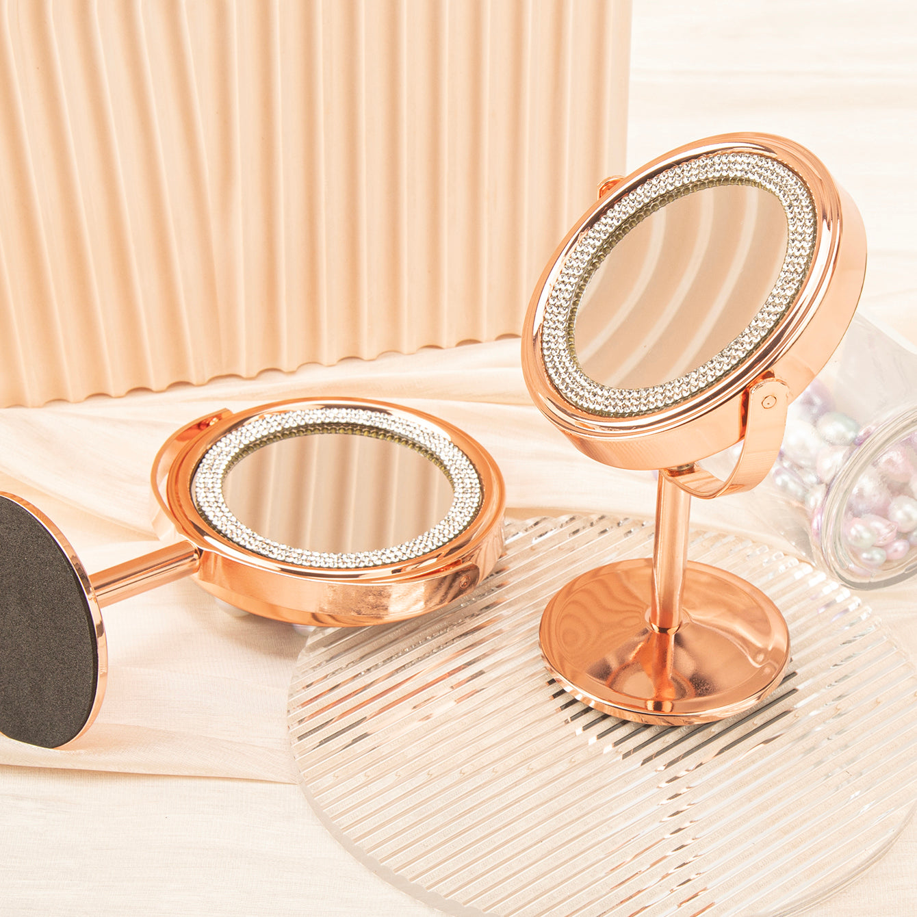 Whether for everyday makeup or special occasions, this round diamond-inlaid makeup mirror will become your indispensable companion. Choose between silver or rose gold to showcase your unique style, and make every makeup session a delightful experience! 💄✨