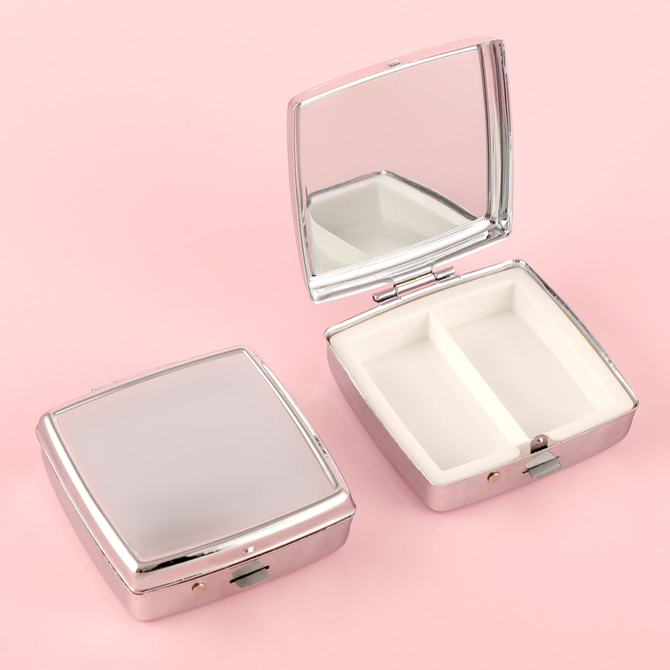 Portable Plating Silver Pill Box,2-Compartment Square Design, 55*55 mm Button Pill Box, Easy to Load Medications, Stylish and Practical, Carry It with You to Meet Your Various Medication Needs in Daily Life and Travel